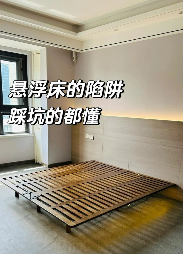 这几年风太大的悬浮床,看着是好看,床像飘在空中,极简高级。但很多便宜货,支撑腿或者结构设计不合理,导致床体稳定性极差。